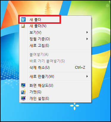 투명폴더를 만들기 위해서 윈도 바탕화면 아무 곳이나 마우스 오른쪽을 클릭하고 새 폴더를 하나 만들어주세요.