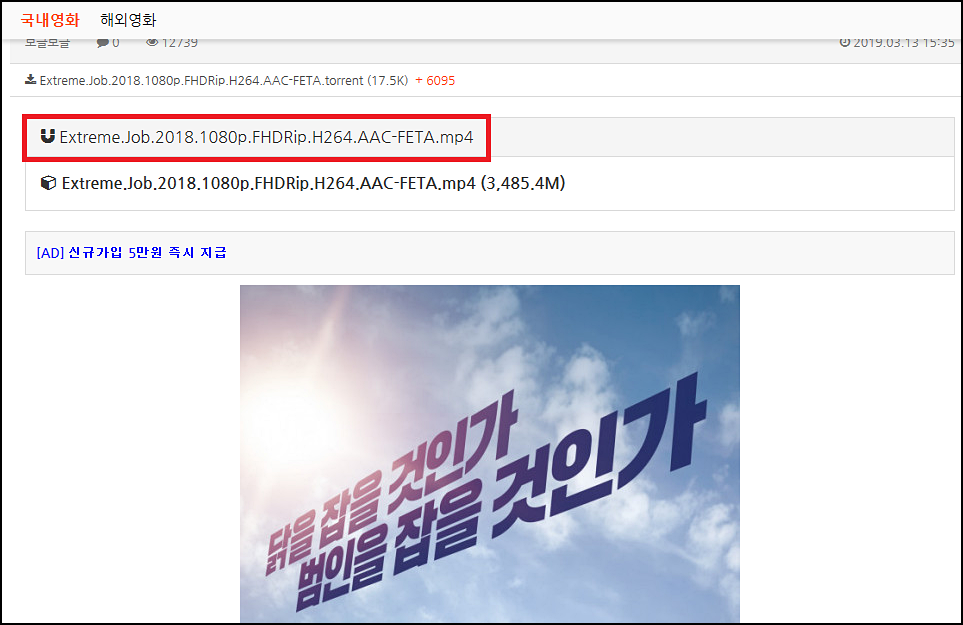 그럼 다운로드 가능한 링크를 토렌트에서 자동으로 검색해주고 검색된 링크로 들어가서 파일을 클릭하면 토렌트 웹에서 다운로드가 진행됩니다.