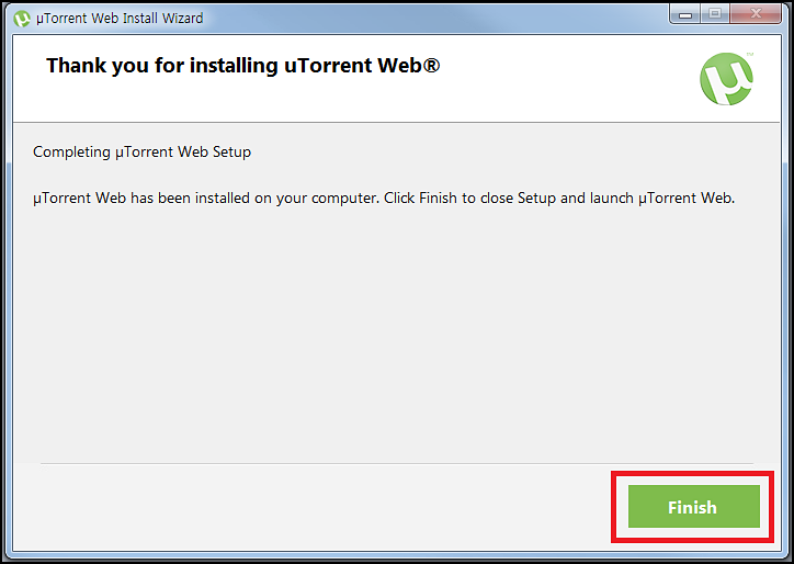 이어서 인스톨링이 끝나고 [Finish] 버튼으로 토렌토 설치 완료를 해주시면 됩니다.