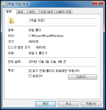 속성 하단에 특성 : 읽기 전용에 네모 표시의 체크 말고 체크 표시로 체크가 되어있다면 체크를 해제해줍니다. 엑셀 액세스할 수 없습니다의 저장 오류는 이렇게 간단하게 해결이 가능해요!