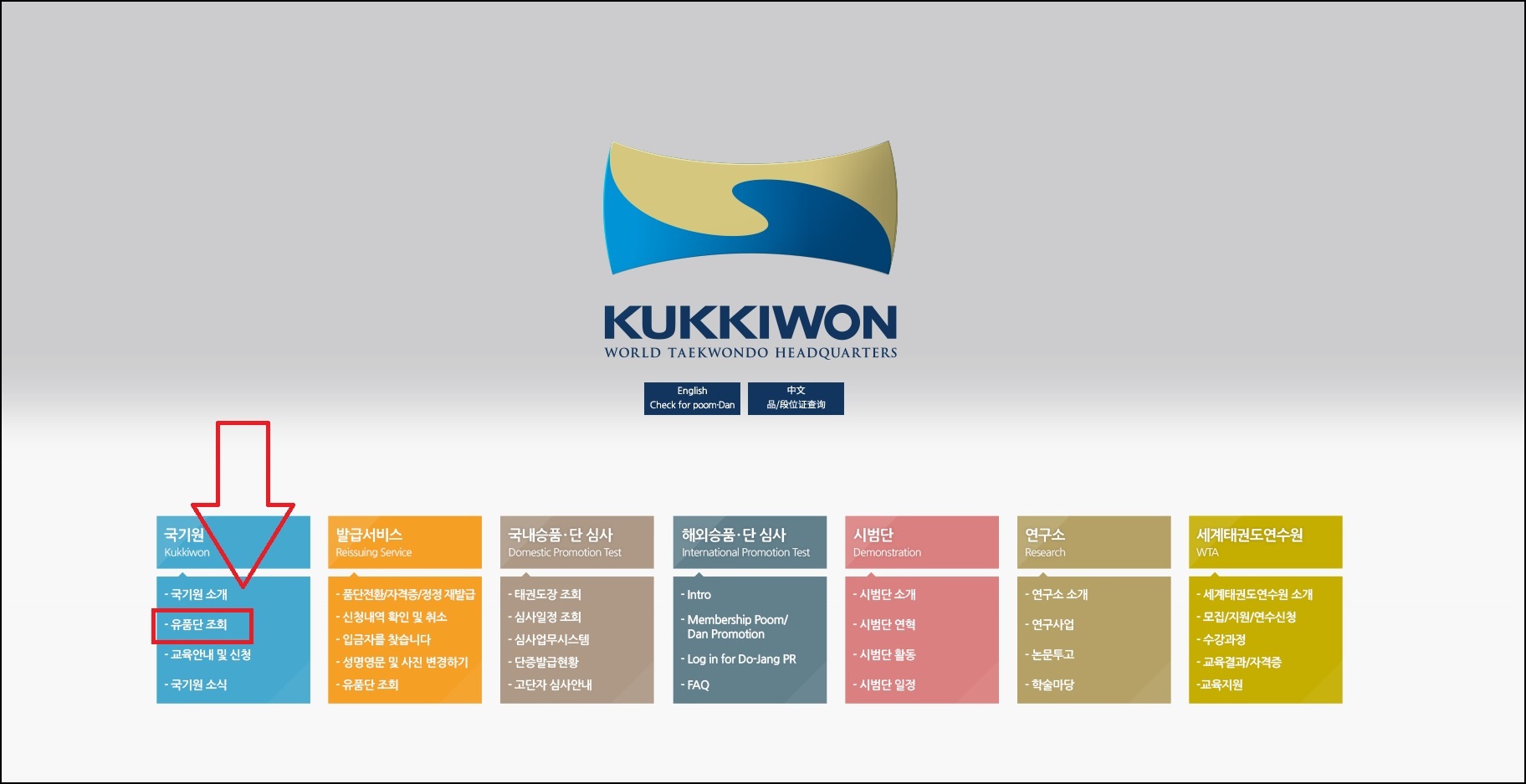국기원 홈페이지에 접속해 이렇게 태권도 단증조회가 가능합니다.
