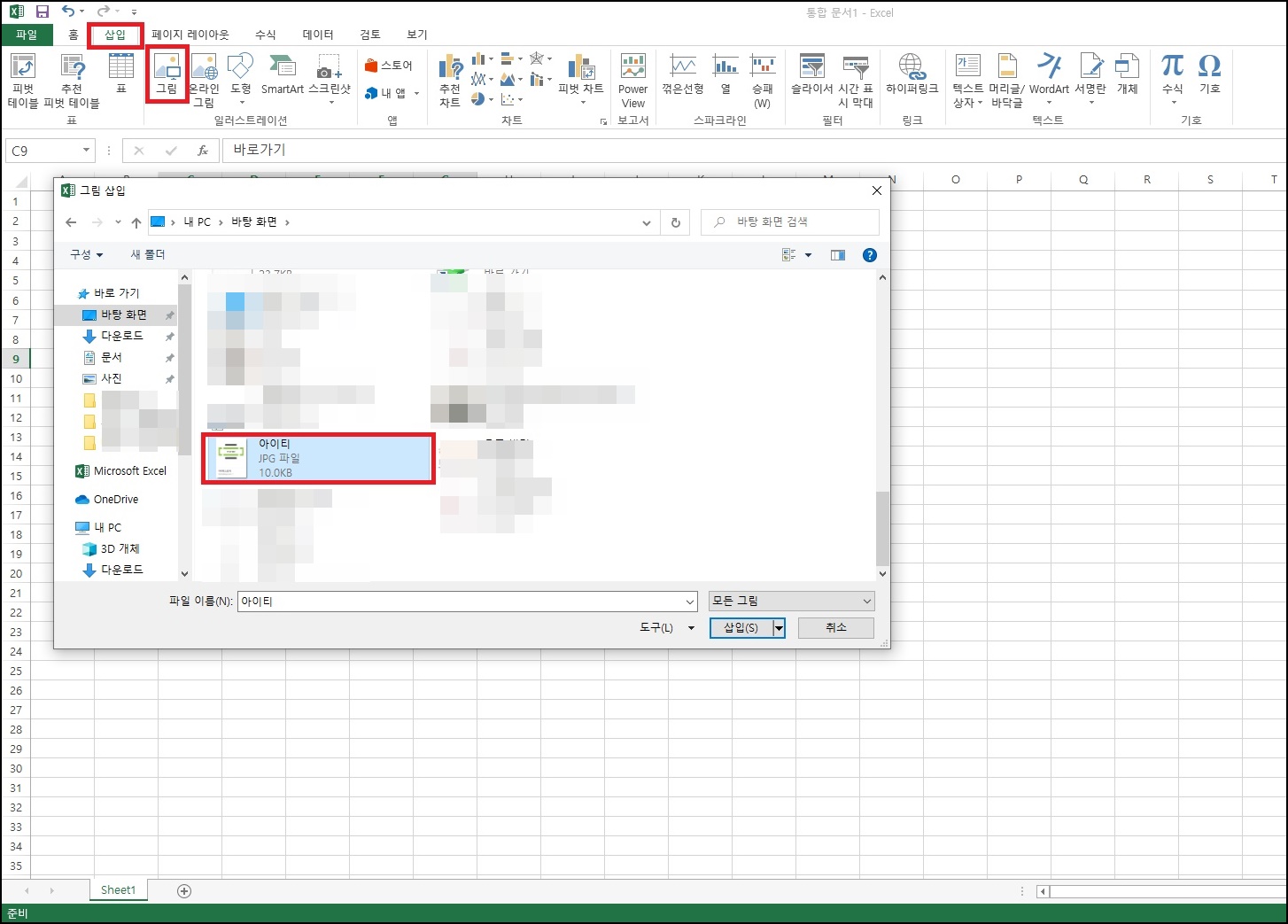 삽입 > 그림 > 불러올 이미지를 선택합니다.