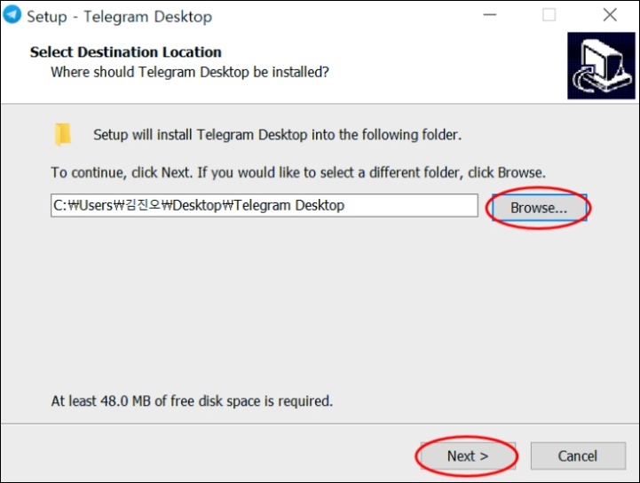 Browse... 을 눌러 원하는 설치 경로를 선택 후 넥스트 클릭!