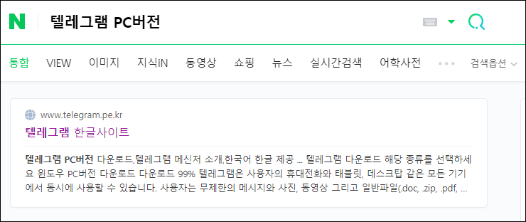그럼 텔레그램 PC 버전을 설치하기 위해서 검색창에 "텔레그램 PC버전" 이라고 검색합니다.