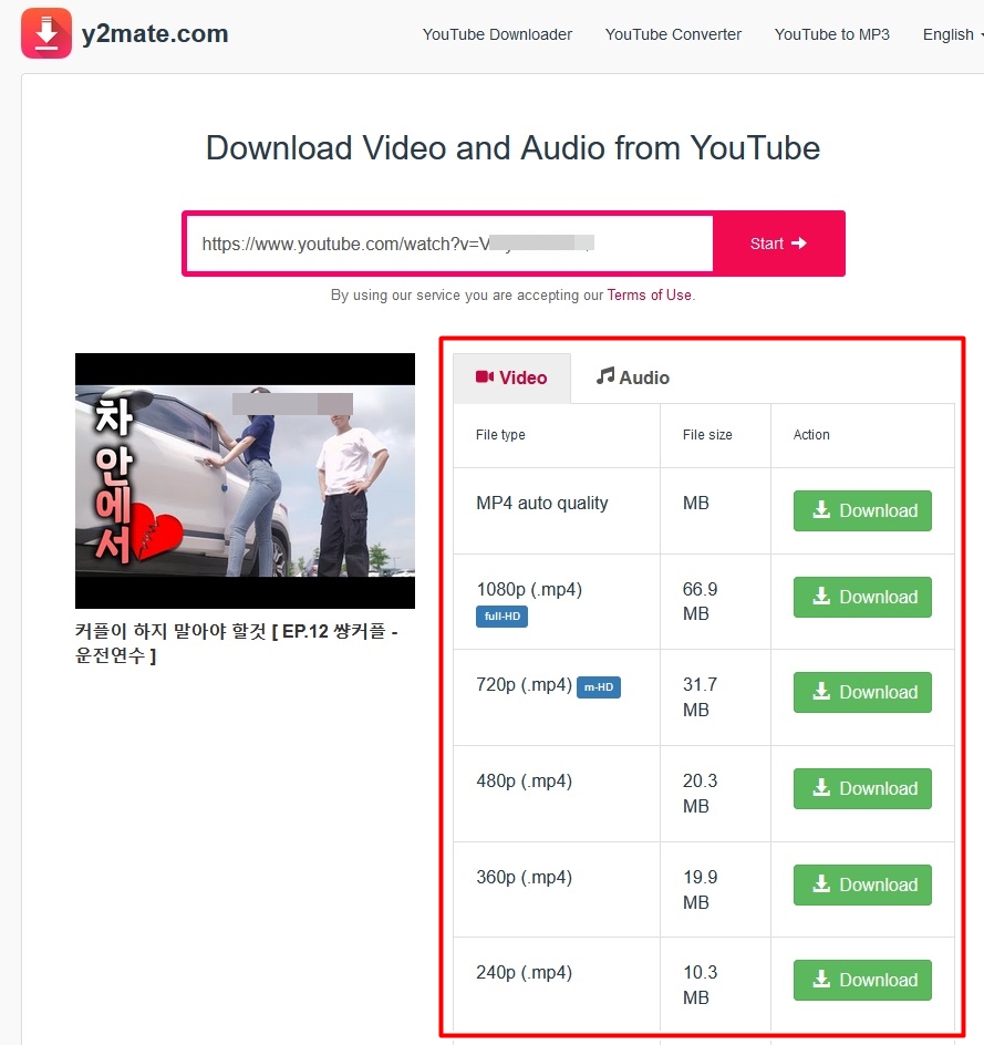 유튜브에서 원하는 영상의 링크 주소를 복사해서 y2mate라는 웹 사이트로 이동합니다.